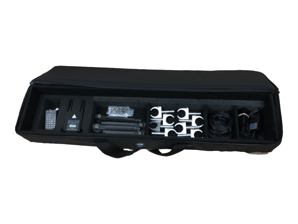 The ASTERA 4-Tube [AX1 / TITAN] Kit from MACCAM includes unique cable, hardware and power supply options that makes the ASTERA system more travel friendly and versatile for the location gaffer. The custom case is specially designed with hard corrugated walls and a duralite ballistic nylon cover sewn over with weatherproof skid bottom, giving you the protection of a hard case but the weight of soft case.