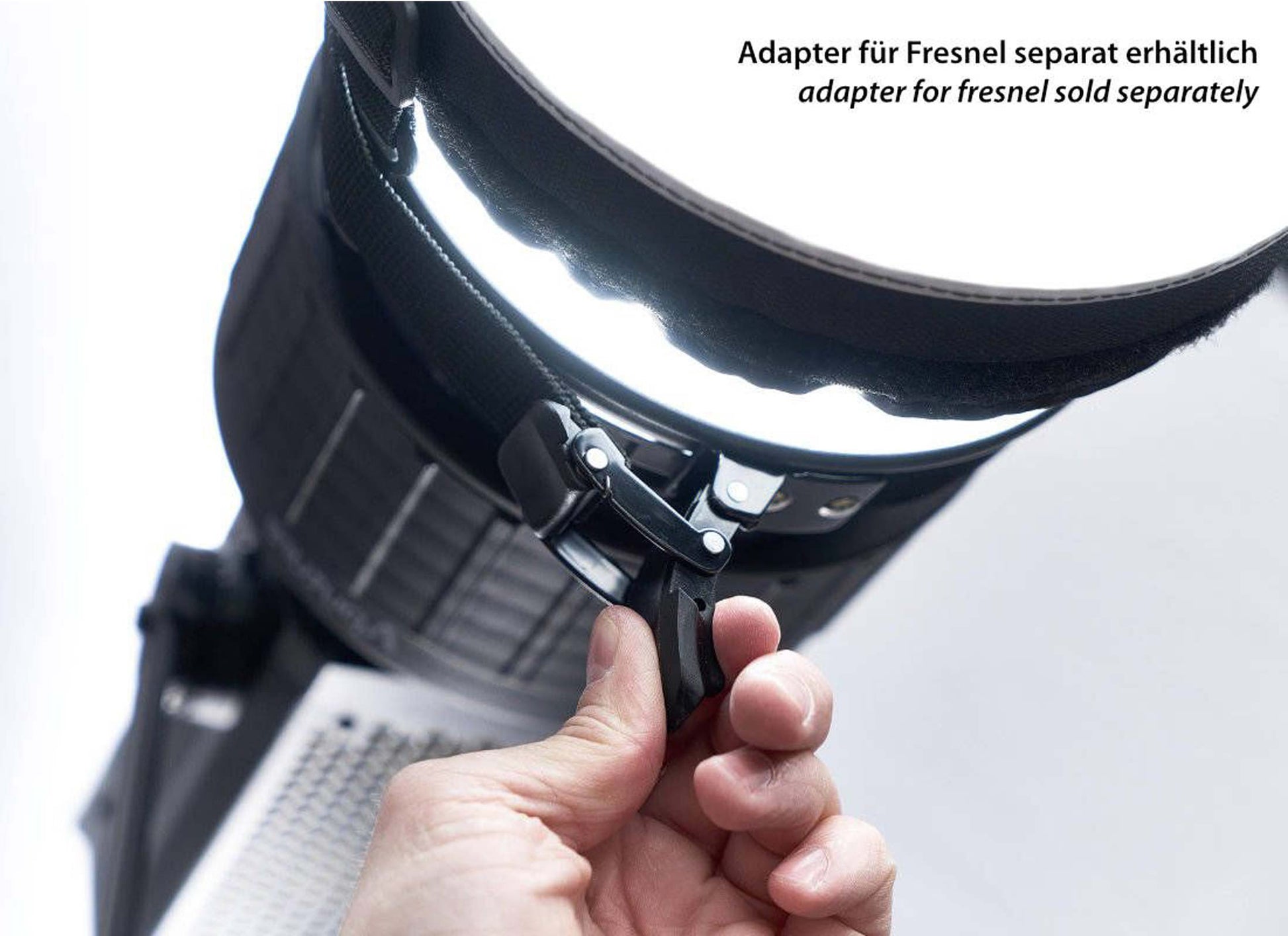 Switchable Diffusions: Easily change the diffuser fabric using the Velcro connection to adjust the degree of softness on set.