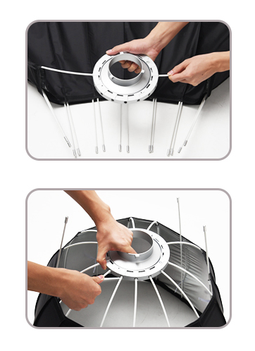 The Godox P120H 48" Parabolic Softbox extends the capabilities of large-scale production lighting, offering a generous surface area with remarkable directionality. Engineered with high-heat-resistant fabric, it pairs perfectly with powerful Bowens-mount fixtures such as LED monolights or tungsten sources. The 16-rod framework ensures precise parabolic curvature, producing consistent and efficient illumination. Its interior silver coating enhances output, while twin diffusion layers refine the light for cinematic smoothness. Ideal for beauty, fashion, and advertising work, the P120H balances wraparound diffusion with controlled contrast, preserving facial contours and fine texture. Easy to assemble with a quick-release mechanism, it’s durable enough for studio rigging and light enough for field deployment—making it a staple tool for professionals who demand consistent, flattering light in any setup.