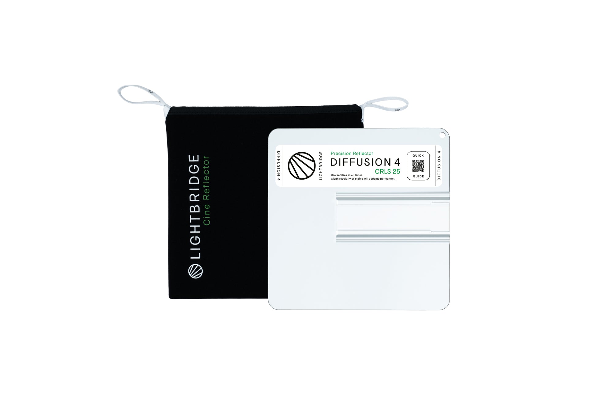Surface: Shatterproof & Lightweight – Ideal for portable, on-set use without the risk of breakage. Touchproof Technology – Fingerprint-resistant & easy to clean for long-lasting performance. Spill-Light-Free Light Control – Maximizes output with 100% color accuracy and only 3% light loss, ensuring consistent reflections. Mounting: Mounting Rail with Easy Access – Built-in Rail for quick and secure attachment of C-Wheel or C-Spigot. Integrated Safety Hole – Allows attachment of a safety carabiner for secure rigging on set. Color-Coded for Fast Workflow – Clear labeling system for quick identification and lighting adjustments. QR Code for Quick Access – Scan instantly for workflow guides and cleaning instructions. Sleeve: Includes Protective Neoprene Sleeve – Shields the reflector from scratches, dust, and damage during transport. Hangable for Extra Protection – Sleeve features a fabric loop attachment in the same color code as the reflector, allowing for quick identification and efficient workflow on set. Care & Maintenance: Touchproof Technology prevents long-lasting stains, but for maximum durability, reflectors should be cleaned before storage to prevent oxidation or lasting smudging. Easy & Effective Maintenance – Keeps your reflectors performing at their best, ensuring consistent light quality on every shoot. The Lightbridge CRLS Precision Reflectors: Developed on set, for set. Engineered aluminum surfaces precisely control light scattering, allowing you to choose different grades of diffusion intuitively, without unwanted spill. This ensures that all your output is exactly where you want it. Designed to create beautiful feathering of light, it lets you decide where your light begins and where it falls off—right at your fingertips. No more flags, frames, or clutter getting in the way of your creativity—simply pan or tilt the Precision Reflector to set the perfect mood. Please Insert USP (link to right), Image: USP 1-1 Please Insert USP (link to right), Video: USP 1-2 Inspired by nature, Ligthbridge Precision Reflectors range in 5 consitent levels from DIFF 0 (real mirror replacement) to DIFF 4 (super white, inspired by snow) and come in 5 sizes. Please Insert USP (link to right), Image: USP 2-1 Please Insert USP (link to right), Image: USP 2-2 Please Insert USP (link to right), Video: USP 2-3 Revolutionizing light control, this is the first key light that eliminates spill light, minimizing the need for extra grip equipment—delivering light exactly where you need it. Its directional diffused light, powered by CRLS technology, allows for precise shaping and seamless integration into any setup. A game-changer for a fast, easy, and intuitive workflow on set, empowering filmmakers to control light with unmatched precision and efficiency. Please Insert USP (link to right), Image: USP 3-1 For the first time, diffusion can be achieved without real light loss. By precision reflecting instead of transmitting light through traditional diffusion materials, you gain more output, more control, and no spill-light or color shifts. Please Insert USP (link to right), Image: USP 4-1 Precision Reflectors are designed to perform in confined setups, allowing your light to feel further away (by reflecting your light source, you're doubling the perceived distance). This setup maximizes control over diffusion, light size, and placement, all while keeping your grip setup minimal. Please Insert USP (link to right), Image: USP 5-1 Ligthbridge Grip allows you to swap reflectors without losing your set angle—simply open the wheel, slide out the current reflector, and insert the new one. The closest you’ll ever get on a physical set to an "undo" or "redo" button! Please Insert USP (link to right), Video: USP 6-1