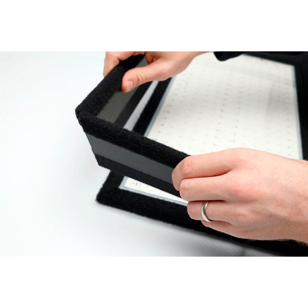 Woven fabric "diffusers "are a typically used item for this type of lighting system. LiteMat Diffusers are made in industry- standard varieties and are assembled by stitching "hook" Self-Securing Closure around their borders that mate with the loop on the skirt. Presently, there are 3 densities grid-cloth (full, half, and quarter). This item is a single diffuser in quarter density.