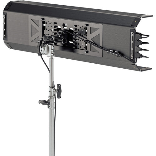 The Rainbow 2 Linear RGB LED Tube Light by Quasar Science is a 4-foot, high-performance LED tube designed for professional motion picture, video, and photography applications. This lighting tool offers multi-pixel control, allowing each pixel to operate independently or in groups, providing precise and dynamic lighting. With high CRI/TLCI ratings, an SSI daylight rating of 74, and a tungsten rating of 91, it ensures vibrant, accurate lighting. The high-efficiency LEDs blend colors and brightness seamlessly to create millions of colors and brightness levels.Equipped with Pixel software, the Rainbow 2 includes 20 pre-programmed effects and macros, such as rainbow, short circuit, and customizable emergency lights. It outputs up to 91.9 lux at 9.8' (5600K), providing smooth, flicker-free dimming and tunable white light with high RGB color saturation, making it a versatile workhorse for lighting everything from actors to entire environments.Advanced Color Control:Intuitive Color Palette: Developed through advanced color science research, allowing artists to adjust lighting effortlessly.Spectral Control: An innovative tool that gives full creative control over any color's spectral characteristics.Superior Color Science:The RGBX Spectral Science Color Engine provides spectrally calibrated color with access to over one billion hues, ensuring precision and realism in lighting.Exceptional White Light:Delivering high-quality white light across a 1750 to 10,000K range, the Rainbow 2 is calibrated to TM-30 reference illuminants, with CRI values up to 95, SSI up to 91, and TM-30 up to 94, ensuring outstanding color rendition for all photographic and film applications.Ossium Mounting System:The Ossium Mounting System is designed for flexibility and precision, enabling secure and versatile rigging in any production environment. Its slender rail offers multiple mounting points for creative placement while ensuring safety and efficiency.Control Options:The Rainbow 2 can be controlled locally via its integrated OLED screen, allowing for accurate and repeatable results. Additionally, it offers both wired and wireless control, including Bluetooth, DMX, Lumen Radio CRMX Wireless+ Bluetooth, and Artnet over Wi-Fi. With Cat 5/6 RJ45 ports, lead/follow configurations are possible, while Ethernet passthrough simplifies daisy chaining, streamlining network design and scalability.External Battery Compatibility:Compatible with a wide range of industry-standard batteries, the Rainbow 2 can be powered by 12-30 VDC batteries using a 4-pin push-pull PTAP connector. This eliminates downtime for battery swaps and avoids shipping restrictions on duplicate lights. The Ossium battery plates (sold separately) make the process seamless, ensuring uninterrupted power during production.Quasar Science True-1 Multibank Power Adapter (4-Bank):The True-1 Multibank Power Adapter allows for stacking Quasar light fixtures into powerful AC-powered arrays. Compatible with legacy Quasar lights via Q-Blocks or mountable directly to the Ossium Rail, it integrates effortlessly with QuasarPlates or other shell housings for enhanced lighting setups.