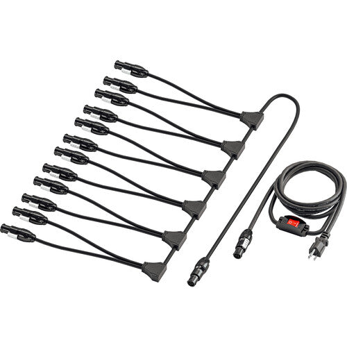 The Twelve-Bank Power Adapter (Type B) from Quasar Science is a 12.5' True 1 power splitter designed to power stacked light fixtures from a single outlet, offering a practical and efficient solution for professional lighting setups. With a US plug, this adapter ensures seamless connectivity, making it perfect for use in studios or on-location shoots where multiple fixtures need to be powered from a single source.